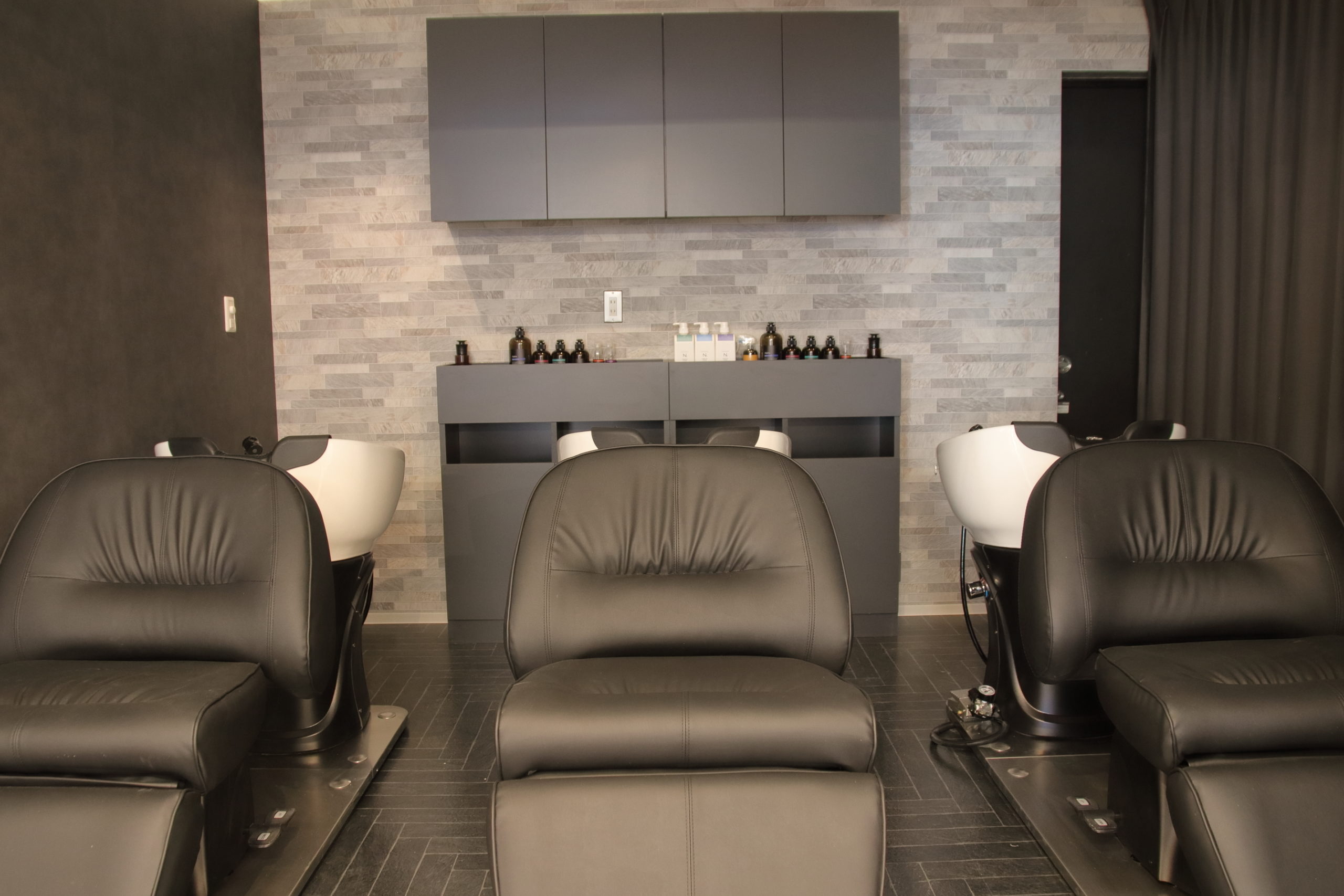 リラックスの本質は、シャンプーやトリートメントの時間にある。 だからこそ、balanceはシャンプールームに強いこだわりを込めました。 フルフラットのシャンプー台、落ち着いた照明──まるで非日常に迷い込んだような癒しの空間で、心ゆくまでおくつろぎください。